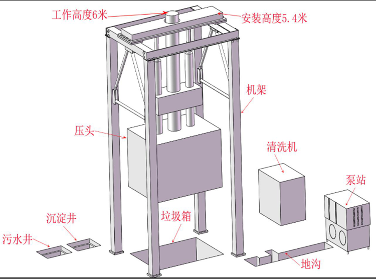設有垃圾儲存箱,適合集裝箱式散裝垃圾運輸車卸料,減少運輸費用。
