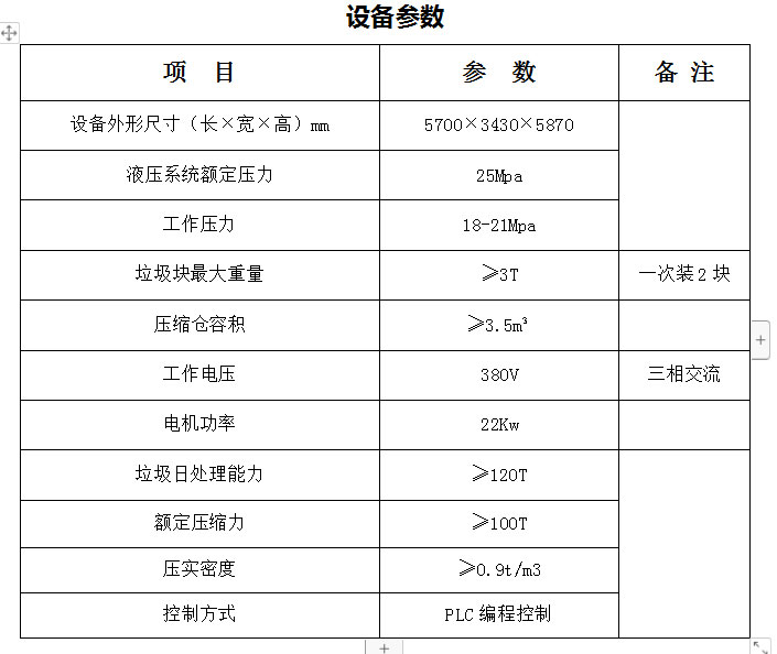 2.采用垂直壓縮方式,壓縮力大,垃圾塊壓實(shí)密度大。