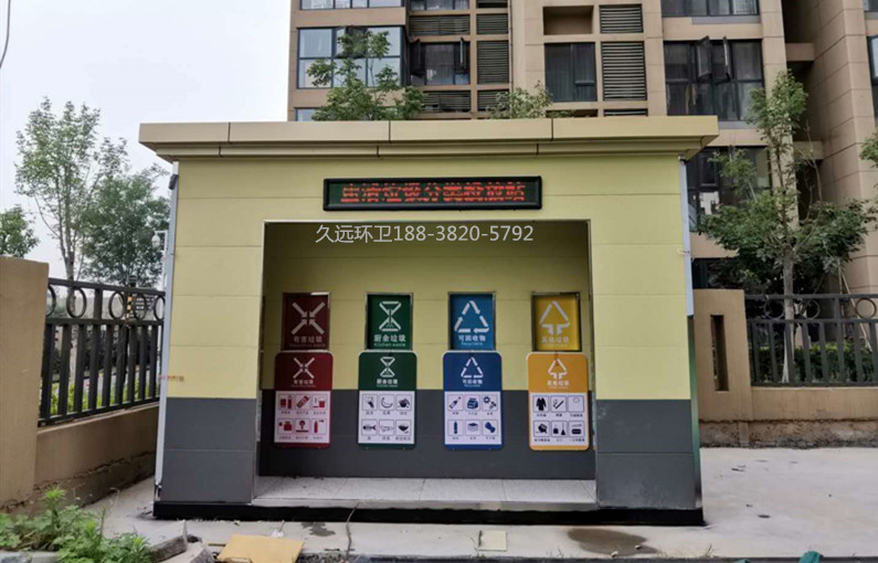 垃圾分類收集房廠家定制——久遠(yuǎn)環(huán)衛(wèi)是一家集研發(fā)生產(chǎn)、銷售服務(wù)為一體的大型環(huán)衛(wèi)設(shè)備生產(chǎn)企業(yè),公司注冊(cè)資金5000萬元,占地面積50余畝,擁有現(xiàn)代化生產(chǎn)車間1萬余平方米,辦公面積1000余平方米,在職員工200多人,具有雄厚的技術(shù)及生產(chǎn)實(shí)力。 公司主要生產(chǎn)垃圾壓縮中轉(zhuǎn)站、垃圾分類收集房、環(huán)保移動(dòng)公廁、各類垃圾桶果皮箱、環(huán)衛(wèi)工具箱、環(huán)衛(wèi)道班房、崗?fù)?、休閑座椅、等公共環(huán)衛(wèi)設(shè)施。